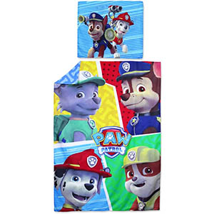 Vamos a empezar presentándote unos coloridos y llamativos juegos de cama compuestos de fundas nórdicas y fundas de almohada con los diseños de la Paw Patrol.