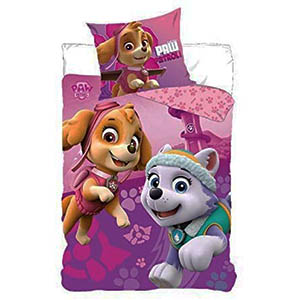 También pueden considerarse como fundas nórdicas patrulla canina para niñas ya que por lo general a ellas les encantan los colores rosas y morados que predominan.